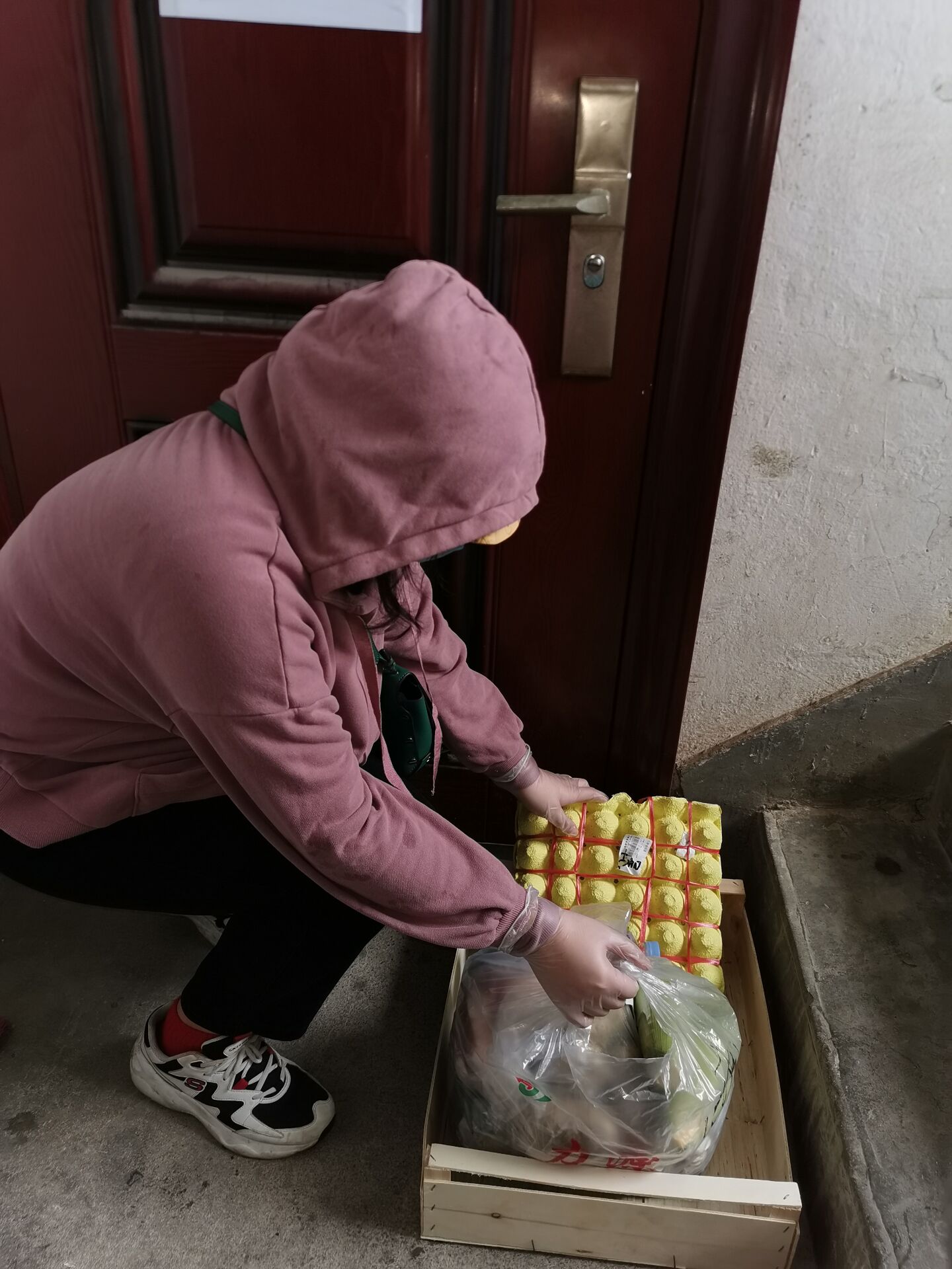 居家隔离期间,党员志愿老师提供了生鲜配送、餐饮配送等服务,所有物品经手时经过消毒,采用无接触配送模式,把居家老师所需物资点对点运送到家。一根小小的体温计、一袋丰富的食品,都凝聚着彼此浓浓的关心。