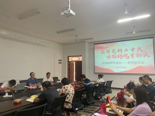 为庆祝第38个教师节,加强我院教职工的归属感。9月8日,伟德bv1946官网组织全体教职工在探天楼C207会议室召开了“迎接党的二十大,培根铸魂育新人”为主题的教师座谈会。