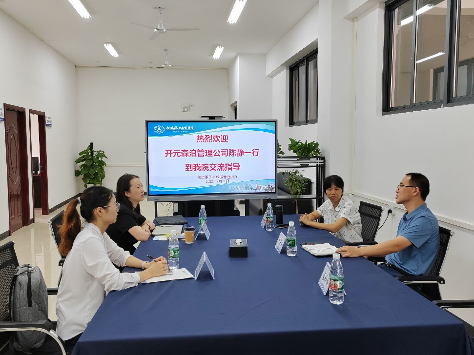 9月21日,开元森泊管理公司总经理助理兼人力资源总监陈静一行到学院开展交流洽谈,学院党委书记张海涛和旅游管理教研室有关老师参加座谈交流。