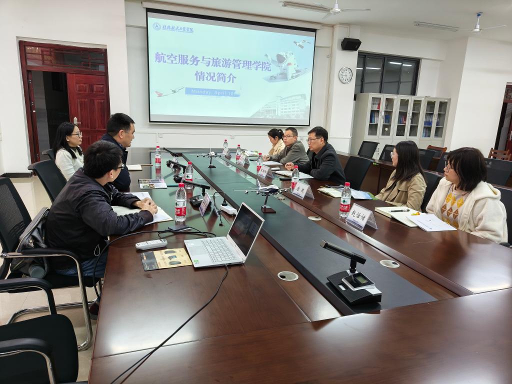 4月10日下午,广西旅发桂林投资有限公司党委委员、总经理助理孙鹏一行三人到访我院,开展校企合作交流。学院院长林朝阳、党委副书记唐珉、相关教研室主任及毕业班辅导员参加交流座谈会。