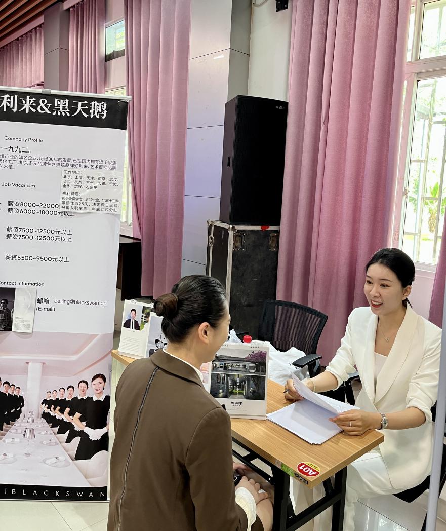 2023年5月21日,学院邀请北京市好利来食品有限公司、珠海华发国际酒店管理有限公司瑞吉酒店、广东链家房地产经纪有限公司、桂林市创力传媒有限公司等24家企业,齐聚我校北校区就业指导中心招聘大厅,为2023届毕业生提供了130多个工作职位和实习岗位。300余名应届毕业生和在校生参与招聘,同学们现场提交简历,互动交流,进而达成实习就业意向,双选会现场气氛热烈,秩序井然。