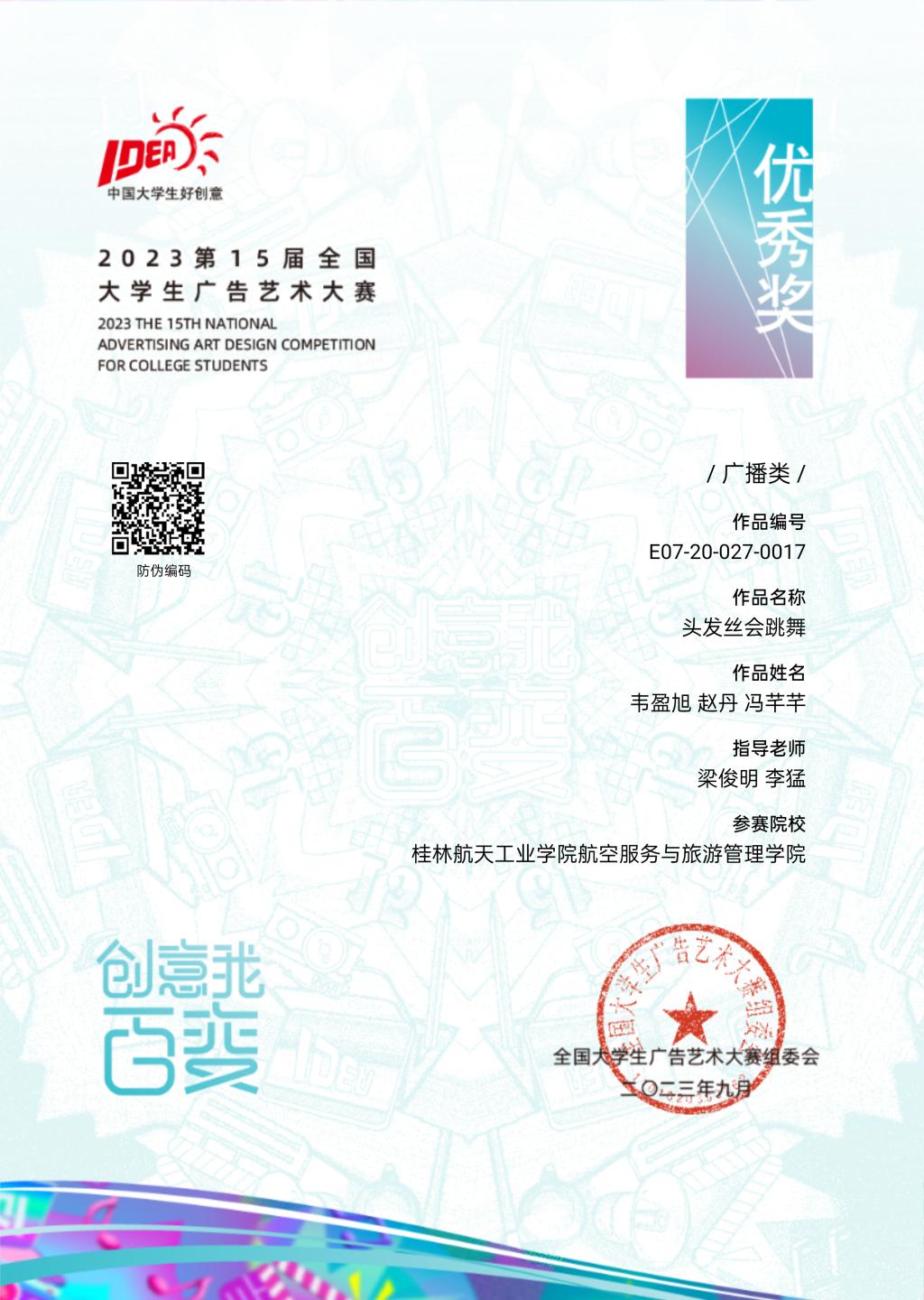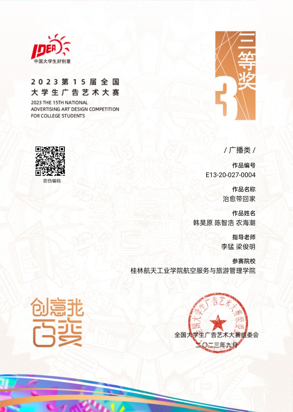 据悉,在7月结束的2023年第15届大学生广告艺术大赛广西赛区评审中,我院学子获二等奖2项、三等奖3项。
