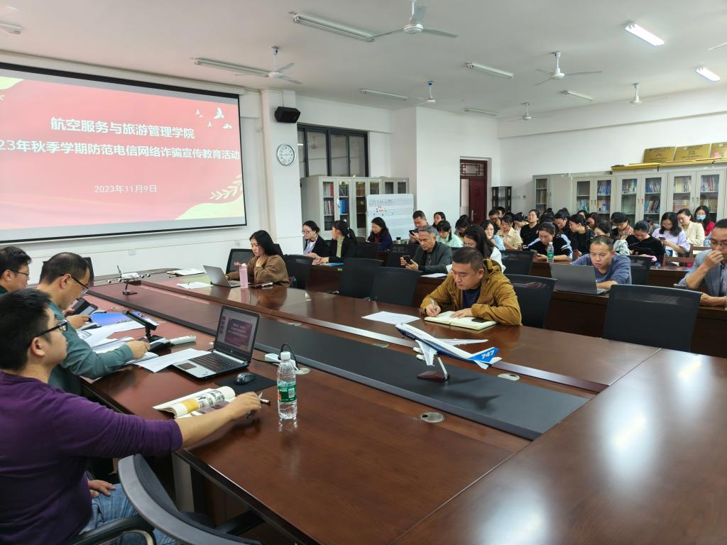 为提高教师防诈识骗能力,切实维护广大教师资金财产安全,筑牢反诈宣传阵地。2023年11月9日下午,学院利用工作例会开展了2023年秋季学期防范电信网络诈骗宣传教育,全院教职工参加活动,活动由学院党委书记张海涛主持。