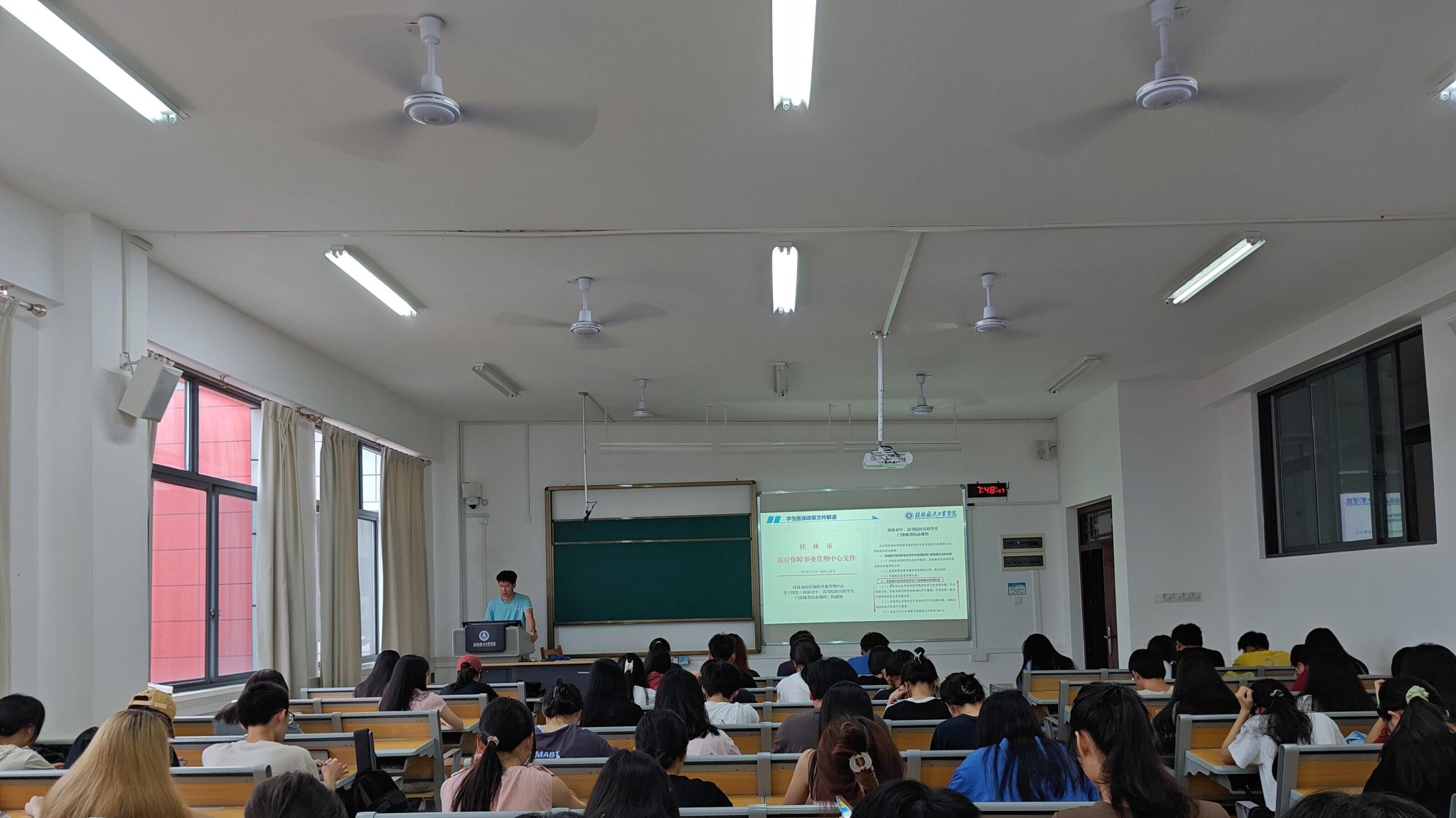 各位辅导员首先介绍了医保知识宣传班会的背景和目的,强调了医疗保险在保障人民群众健康、促进社会和谐稳定方面的重要作用。随后,围绕医保政策、参保对象、缴费标准、待遇享受、就医管理等方面进行了深入浅出地讲解,并通过实际案例分析,让同学们更加直观地了解医保在现实生活中的应用。在互动环节,同学们积极提问,大家纷纷表示,通过此次班会,不仅学到了很多实用的医保知识,还深刻认识到了医保在维护个人健康、减轻经济负担方面的重要作用。许多同学表示,将积极参与医保缴费,为自己和家人筑起一道坚实的健康防线。(撰稿人:唐莉莎)
