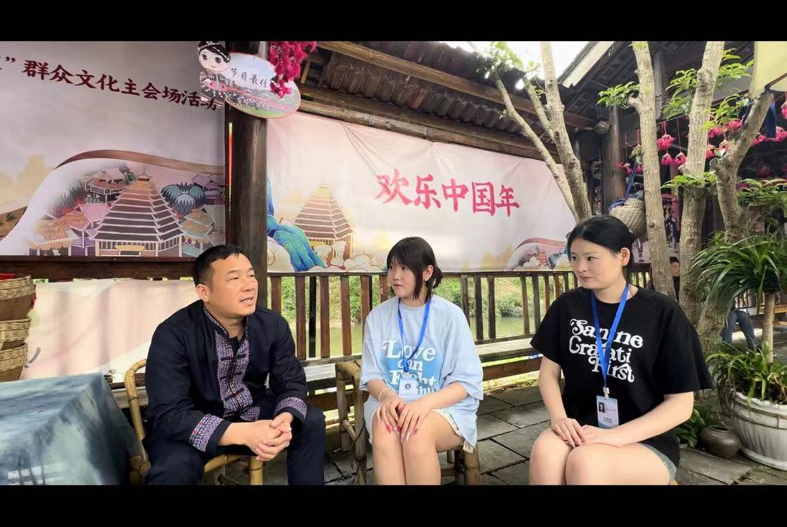团队成员采访程阳八寨山歌表演负责人
