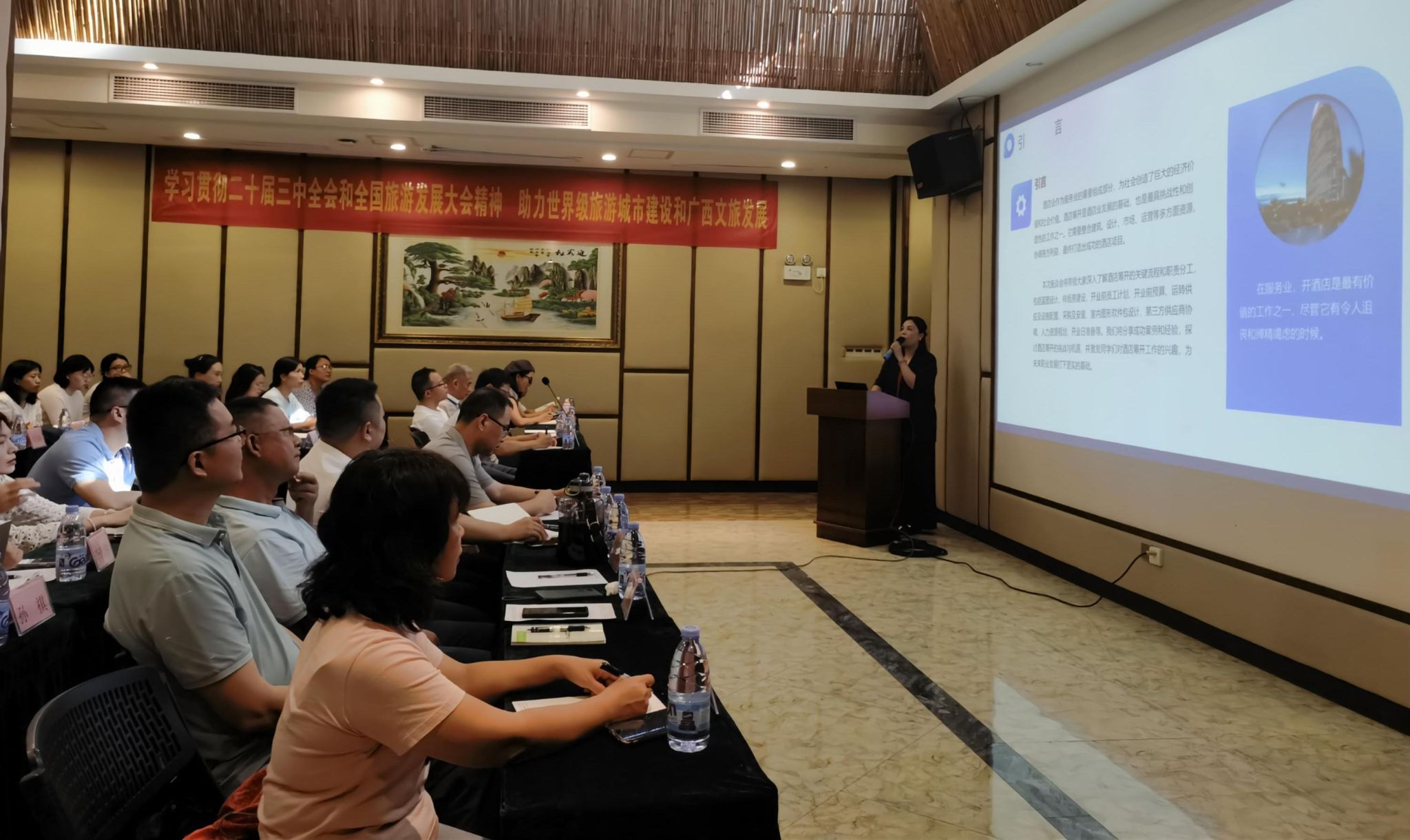 8月26日—28日,学院组织开展了2024年教职工业务能力提升培训班,本次培训以“学习贯彻党的二十届三中全会和全国旅游发展大会精神,助力世界级旅游城市建设和广西文旅发展”为主题,目的是进一步明确工作目标任务,持续加强基层党建,以高质量党建推动学院教学质量和科研能力提升。学院党政班子成员和教职工参加培训。