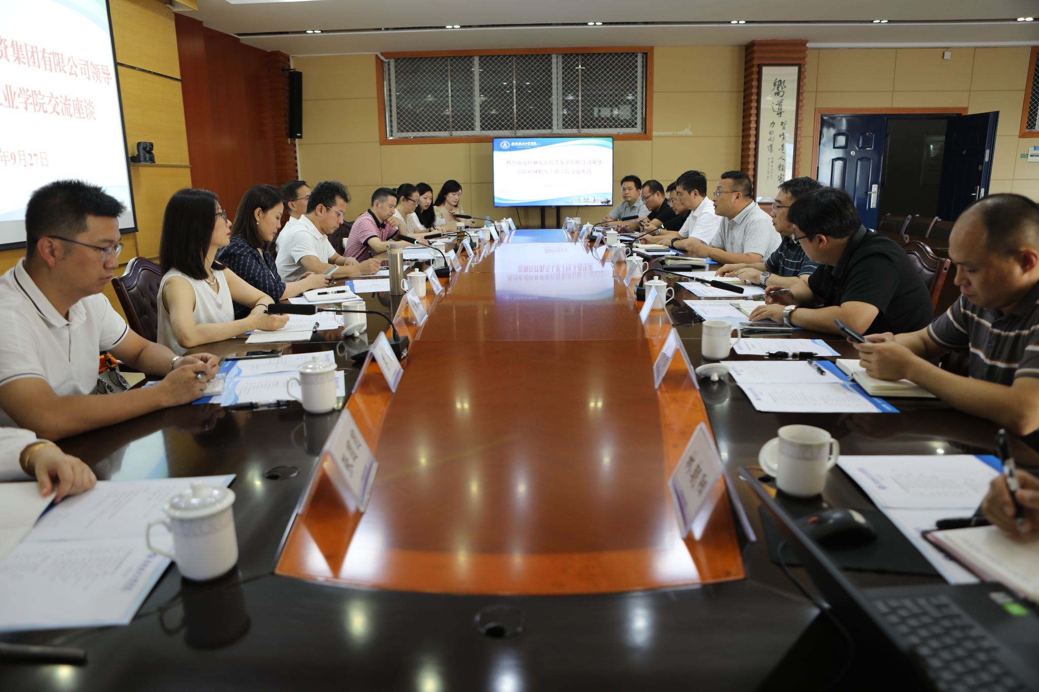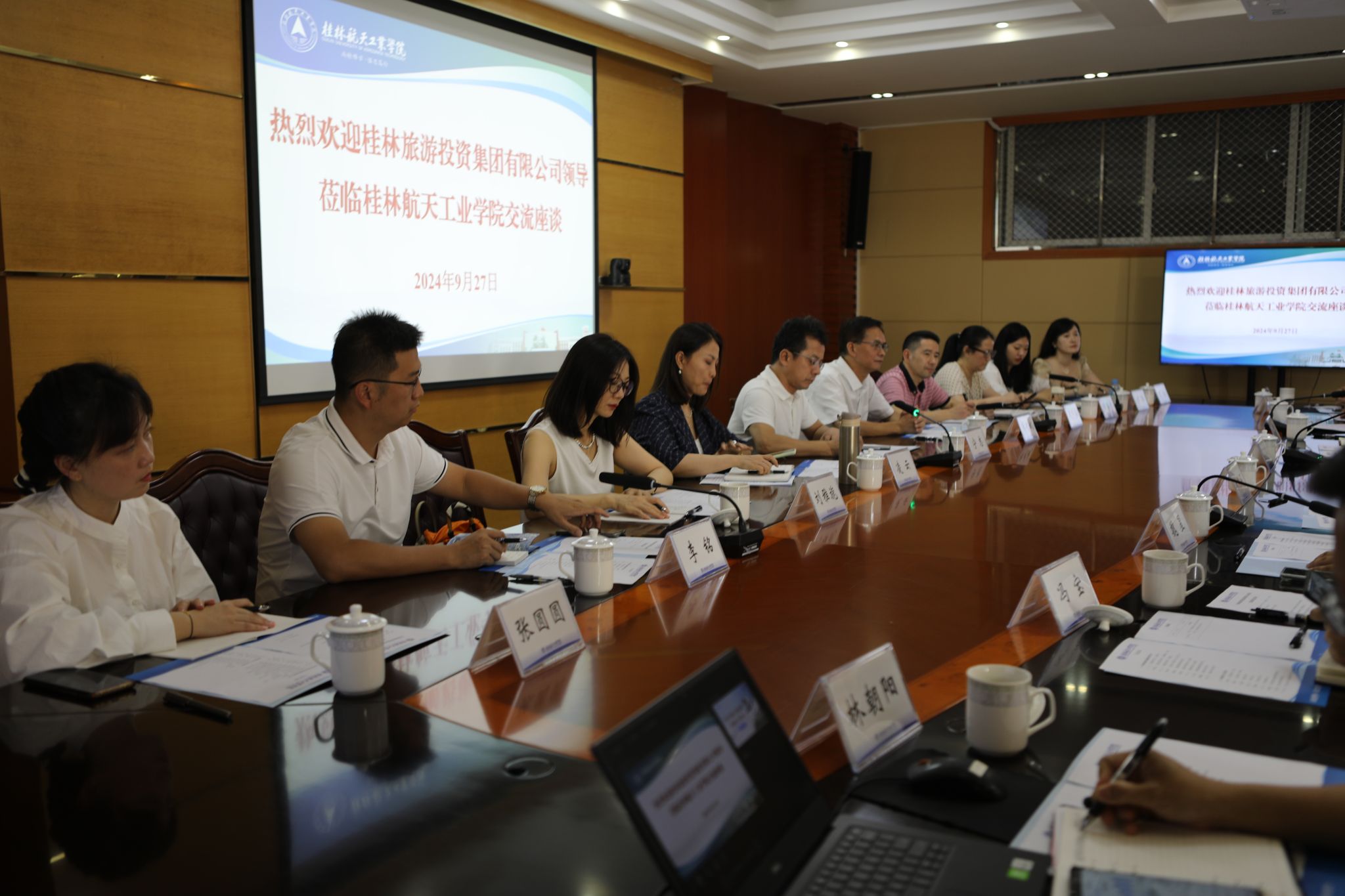 9月27日下午,桂林旅游投资集团有限公司党委书记董事长宁志一行10人来校调研交流。校长吴尽昭、副校长张烈平热情会见宁志一行并出席座谈会。双方就促进低空旅游校企合作事宜进行了深入交流。学校党校办、发规处、教务处、科技处、伟德bv1946官网、航空宇航学院及广西(桂林)低空旅游研究院相关负责人参加座谈。