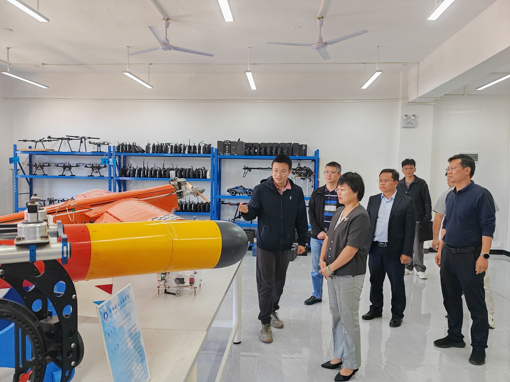 蔡洁一行还对面向水域环境的高精无人监测技术产业化情况和多功能智能液压钻机产业化情况进行现场调研。机电工程学院党委书记谢熊辉、智能制造工程专业负责人刘忠,航空宇航学院副院长王勇军、无人机遥测重点实验室团队成员谭智诚等陪同参观了相关实验室和科研成果展示。