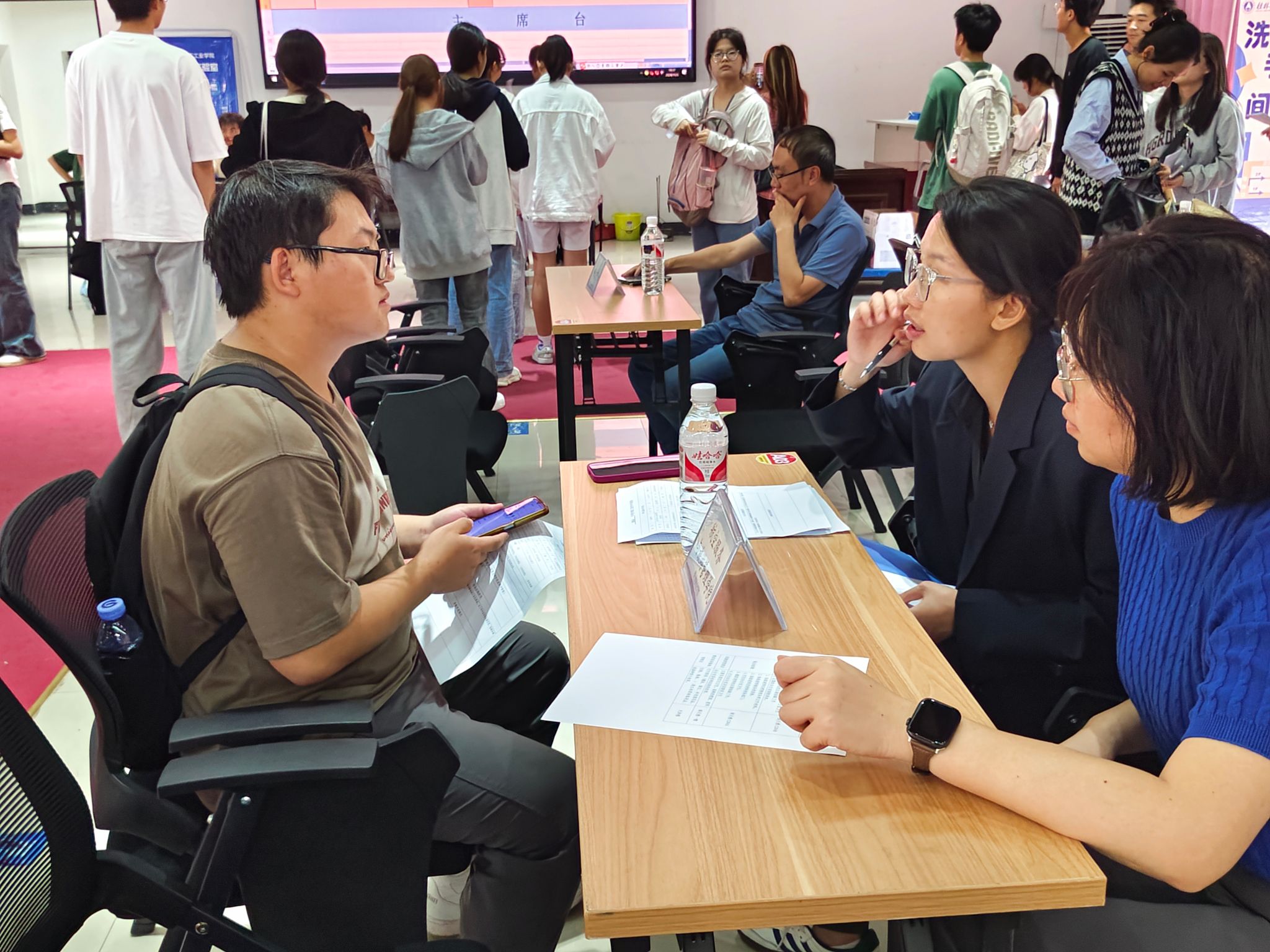 在双选会现场,同学们与管理老师进行了面对面的交流沟通,充分展现个人优势。此次双选会提供了涵盖学院办公室助理、实验室助理、实训基地助理等多种类型的勤工助学岗位,吸引了众多学生前来参加。