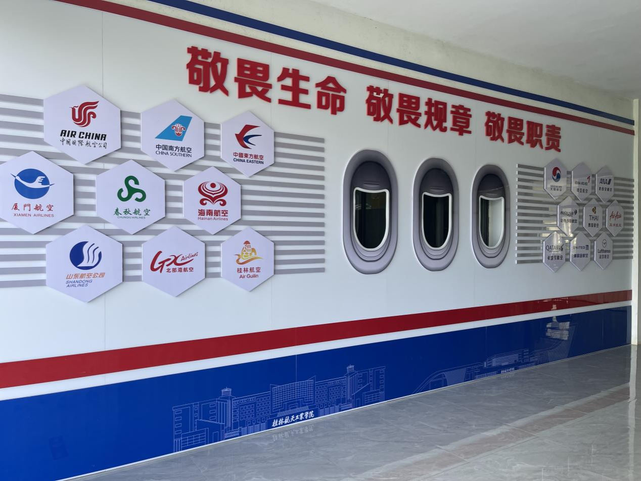 新设计打破传统平面局限,采用模块化拼接工艺,展示国内外知名航空公司标志,并结合实验室研究方向定制了航空服务主题的视觉元素。项目于2025年5月完工,进一步推动产学研结合的创新环境建设。