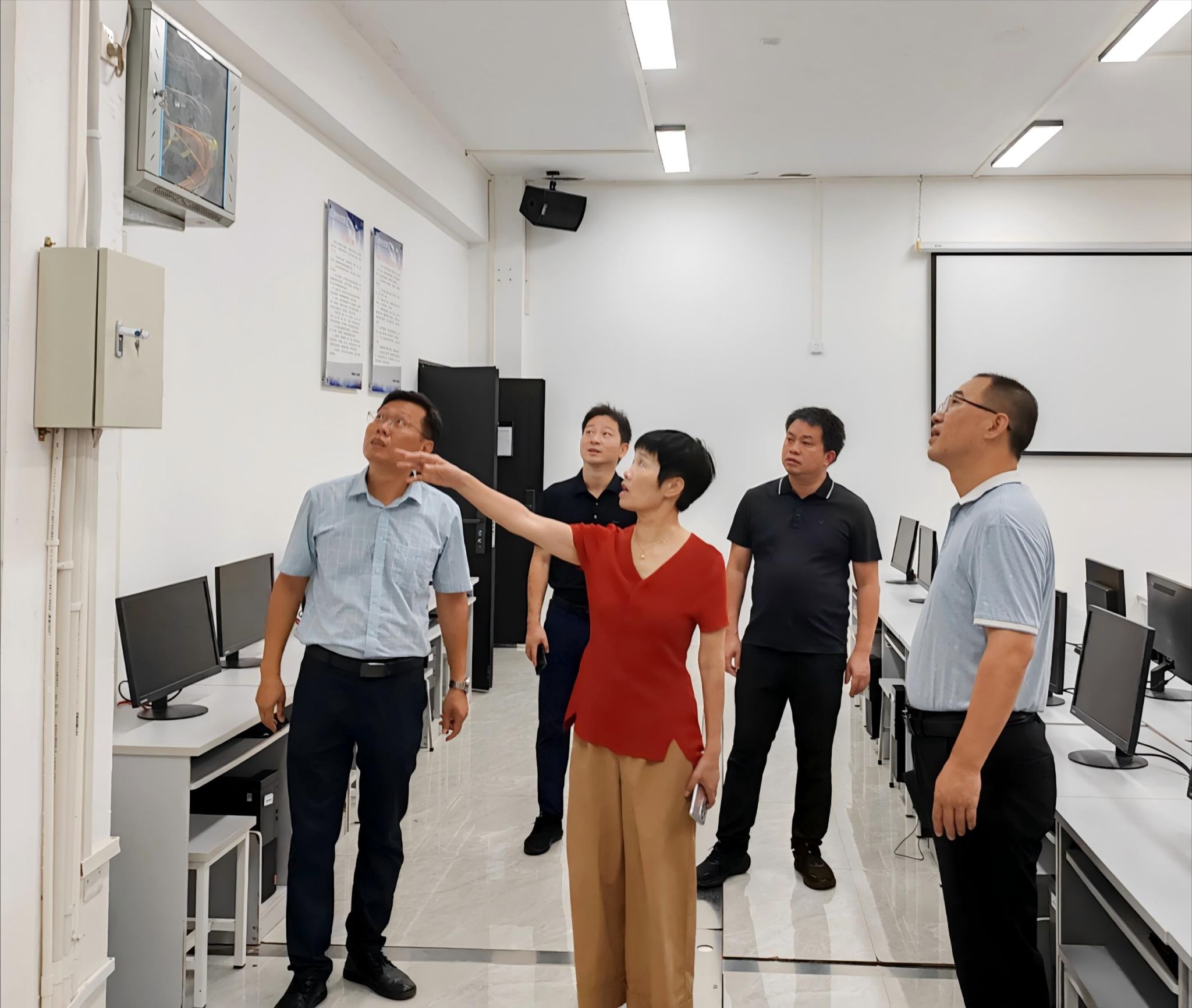 9月9日上午,校党委副书记吴江萍深入学院实地检查新学期各项工作开展情况,学院党委书记张海涛、院长林朝阳、党委副书记张磊磊陪同检查。吴江萍现场了解学院实验室开学准备、教学安排、师生返校、教师科研、学生就业等工作进展情况。其间,学院相关领导做了详细汇报。