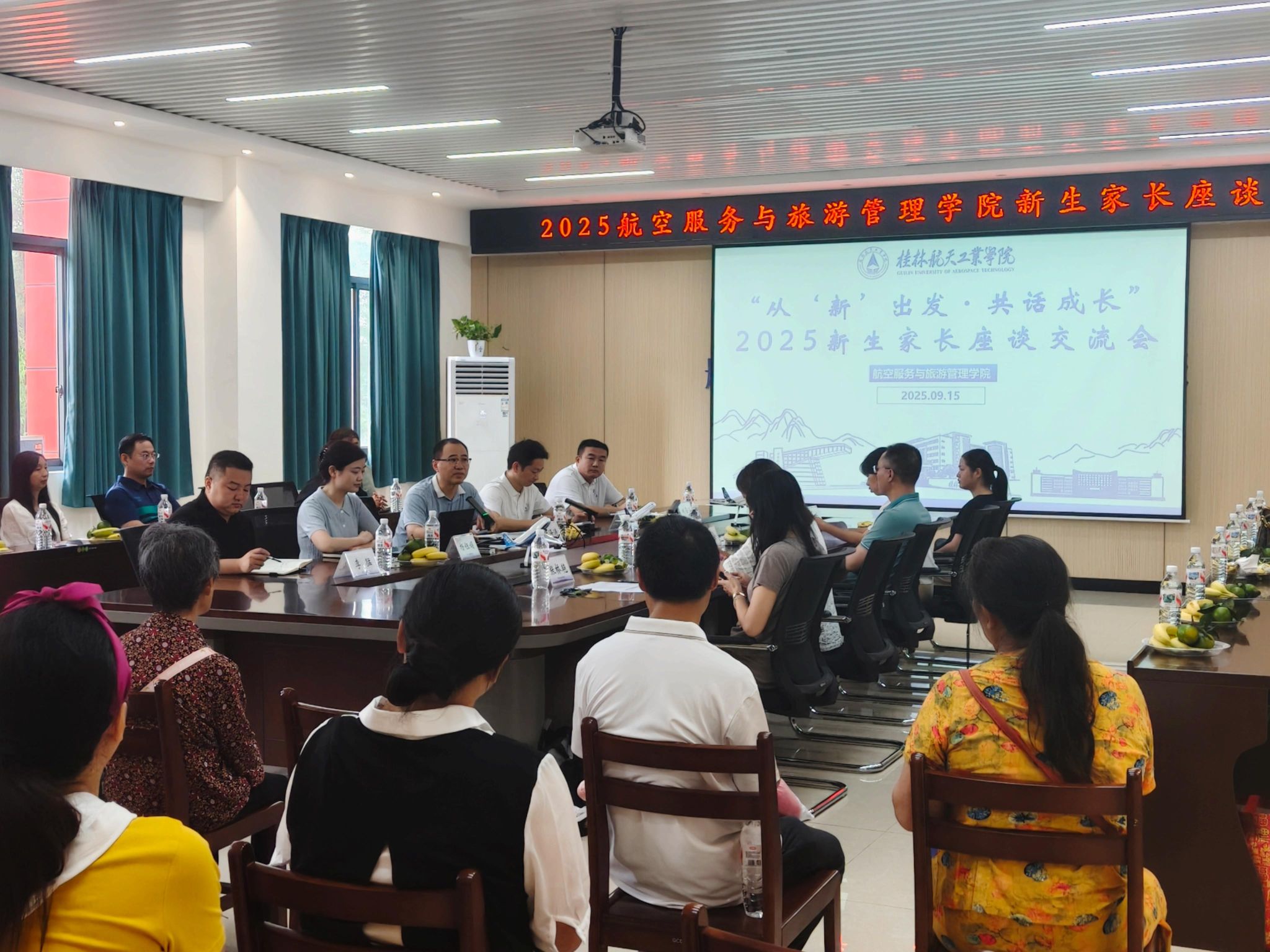 互动交流环节中,家长们围绕学生发展核心关切积极提问。针对就业前景疑问,学院重点介绍“校企合作+行业认证”培养模式,强调与桂林航空等企业共建实习基地;宿舍安全管理,24小时安保巡查、智能门禁及心理健康预警的三重防护体系。2025级新生家长代表们表示:“学院的细致规划让我们对孩子的大学生活充满信心。”