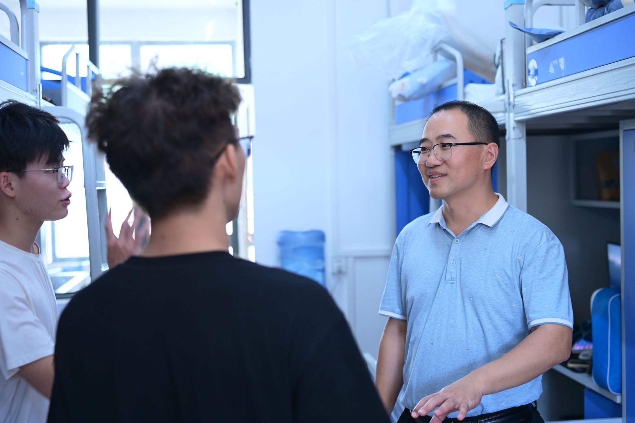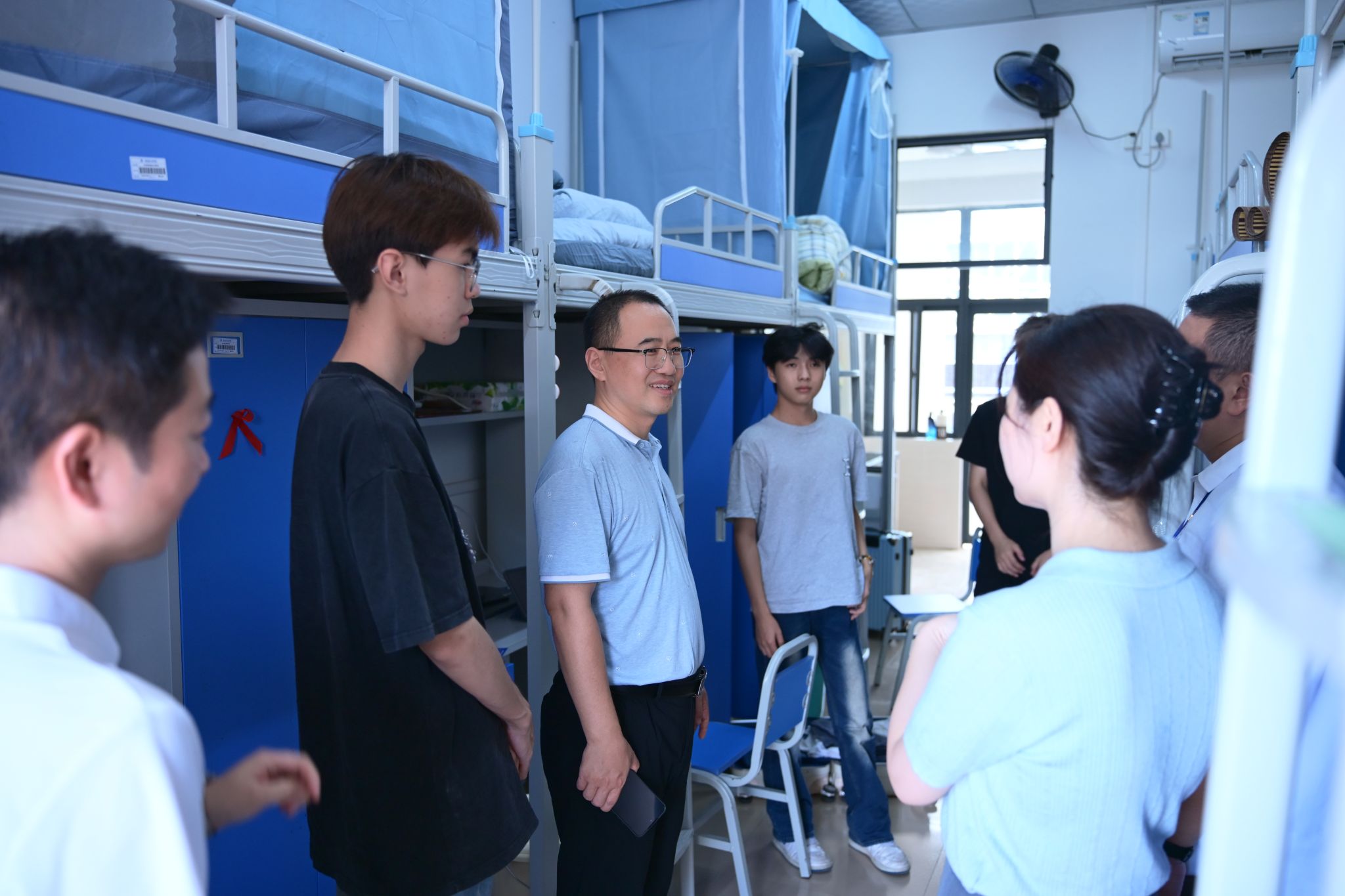 走访活动中,学院党委书记张海涛详细询问了新生的住宿适应情况、生活需求及学习规划,耐心解答了新生关于校园生活、专业学习等方面的疑问。张海涛强调:“宿舍是学生学习和生活的重要场所,学院将始终把学生的住宿条件和安全放在首位,努力为新生营造一个安全、舒适、温馨的生活环境。”新生辅导员和班主任则与新生分享了大学生活的经验,鼓励他们积极融入集体,充分利用学院提供的资源,提升综合素质。