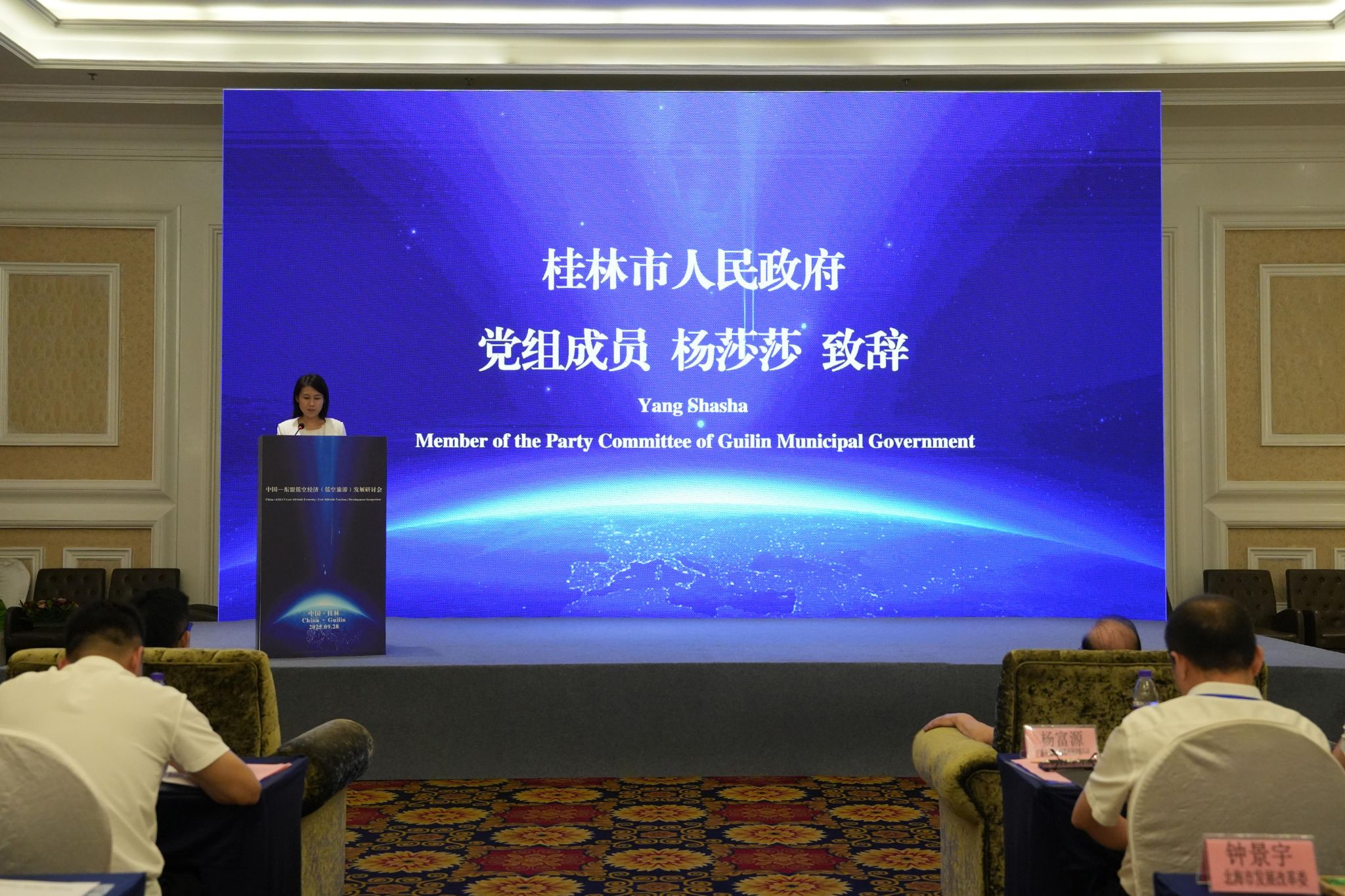杨莎莎在致辞中指出,低空经济的快速发展也对高层次复合型人才提出了迫切需求,高等院校和科研院所是推动科技创新的主力军和人才培养的摇篮。桂林航天工业学院作为老牌工科院校,在低空技术研究、技能人才培养等方面有很好的基础和实力,为桂林低空旅游发展发挥了重要作用。此次低空经济(低空旅游)发展研讨会的召开恰逢其时,相信通过各方智慧的碰撞,必将为推动低空经济从“蓝图规划”走向“现实画卷”提供新的视角和解题良方。桂林将以此次会议为契机,充分发挥桂林高校创新人才聚集优势,凝聚“政产学研用”各方力量,搭建校企合作平台,持续优化营商环境,畅通沟通机制,完善基础设施建设,全力推动低空旅游真正“热起来”、“实起来”、“兴起来”!