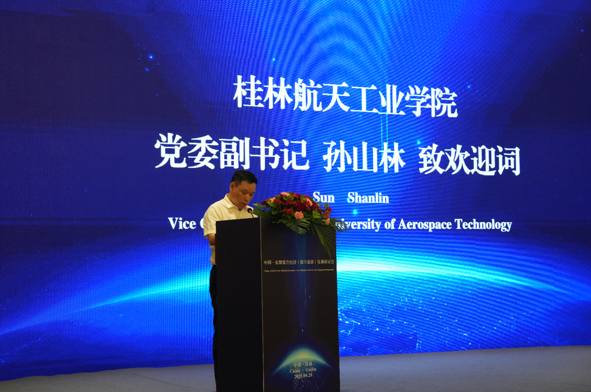 9月28日,由桂林航天工业学院主办、广西(桂林)低空旅游研究院承办的中国—东盟低空经济(低空旅游)发展研讨会暨中国—东盟低空科技企业联盟启动仪式在桂林大公馆举行。中国科学院院士童庆禧、自治区文化和旅游厅二级巡视员刘国建、桂林市人民政府党组成员杨莎莎、桂林航天工业学院党委副书记孙山林、中国科学院教授于强,印度尼西亚班达楠榜大学副校长Erry Yulian Triblas Adesta、马来西亚技术大学机械工程技术学院院长Nadlene Binti Razali、亚洲“一带一路”文化教育合作促进会执行会长杨程成和自治区文化和旅游厅产业发展处、自治区商务厅东盟处、自治区交通运输厅民用机场管理处、自治区工业和信息化厅装备工业处、广西国际博览事务局的领导;广西玉林农业投资集团有限公司、广西旅发桂林投资有限公司、桂林市低空运营管理有限公司等国有企业负责人,桂林市文化广电和旅游局、桂林对外友好协会、北海市发展改革委、北海市工业和信息化局、北海市交通运输局、北海市投资促进局、北海市乡投集团、玉林经济技术开发区、桂林旅游学会、桂林海外华侨交流协会、联合国旅游组织阳朔观测点的负责人;来自北京、广州、深圳、珠海、南宁、桂林的30余家低空相关企业负责人;以及来自广西师范大学、桂林理工大学、桂林航天工业学院、桂林旅游学院、桂林学院、广西机电职业技术学院、桂林市委党校、阳朔县委党校的教师和研究人员;桂林航天工业学院的东盟国家留学生代表等百余人参加了此次研讨会。会议围绕低空经济与低空旅游的现状、发展趋势及合作机遇展开深入探讨,旨在推动中国与东盟国家在该领域的交流与合作。