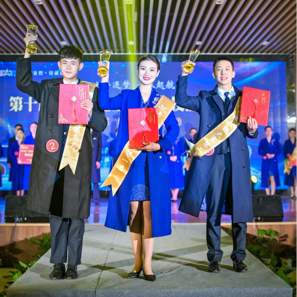 经过评委认真评审,许泓依、王震荣、陈帅兵分获第十届“空乘之星”专业技能大赛冠亚季军;追梦蓝天乘务组获最佳活力团队奖、美少女战士乘务组获最佳创意团队奖;孟子晗、徐晶晶、李绪涵、徐程辉、侯映朵、包远臻、王仁玺、孙明玥获个人单项奖;其他选手获优秀奖。