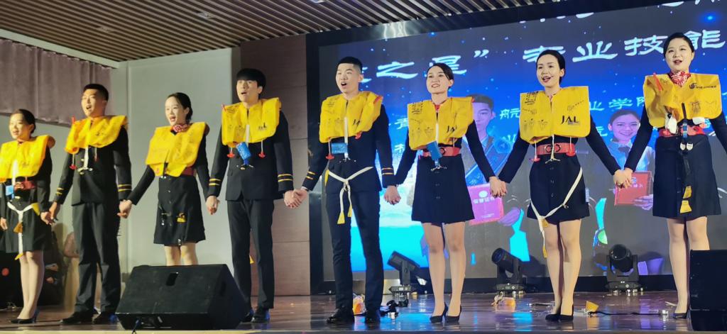 本次比赛共分为四个比赛环节:选手形象展示、才艺展示、礼仪展示及情景模拟展示。选手们以良好的形象、多彩的技能、专业的能力,充分印证了《中国机长》中乘务长的名言:“请相信我们,我们是专业的。”