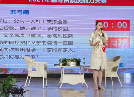 6月4日,学校2021年辅导员大赛决赛在北校区招聘大厅举行,经过激烈角逐,我院辅导员陈丹、赵红艳、赵恬恬、崔丹丹获得“学情达人”奖,陈丹获“理论达人”奖。其中陈丹、赵红艳两位老师还从基础知识测试、学情测试、案例分析环节中脱颖而出,与其他十四名辅导员共同进入了当天决赛现场的谈心谈话环节。
