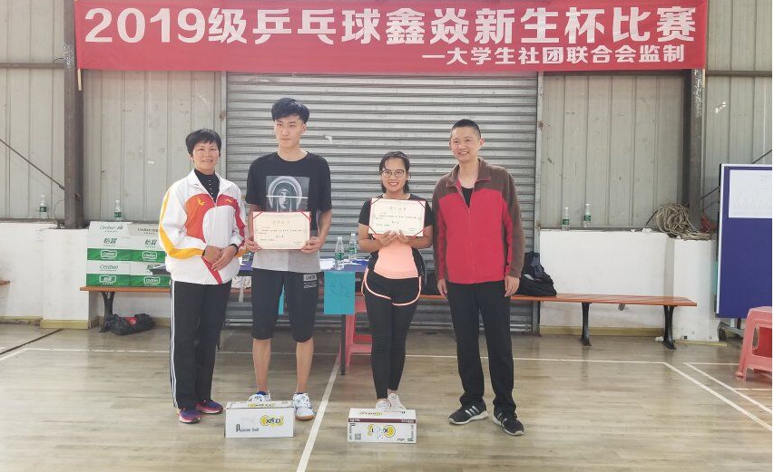 为了营造一个积极、健康、朝气蓬勃的校园氛围,丰富新生的课外活动,促进校园体育文化积极向上的发展,11月9日,由我校大学生社团联合会主办、我校乒乓球协会承办的2019级乒乓球鑫焱新生杯决赛在北校区体育活动中心举行,我院旅游管理专业学生周凯钧和播音与主持艺术专业学生姜淇凡分别获得了第一名、第二名的好成绩!