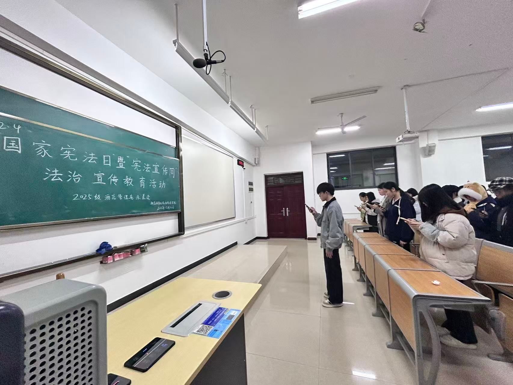 活动现场,各班班长带领大家诵读《中华人民共和国宪法》重点条文。同学们精神饱满、跟读响亮,在齐声诵读中深刻领会“中华人民共和国的一切权力属于人民”“中华人民共和国公民在法律面前一律平等”等核心要义。此次活动特别结合学风建设,各班将宪法晨读纳入早自习规范管理,固定时段、明确内容的集体学习,既培养了学生规律作息、专注学习的习惯,更以法治教育的严肃性带动学习态度端正,有效提振了学风、涵养了班风。