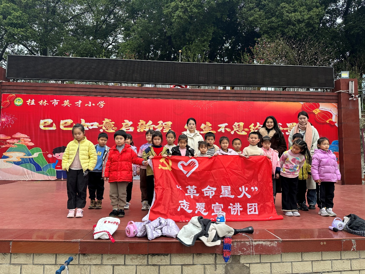 近日,桂林市英才小学的操场上里洋溢着别样的热情,革命星火宣讲团走进校园,为孩子们带来了一场别开生面的沂蒙精神普及课,为幼小的心灵播下红色的种子。