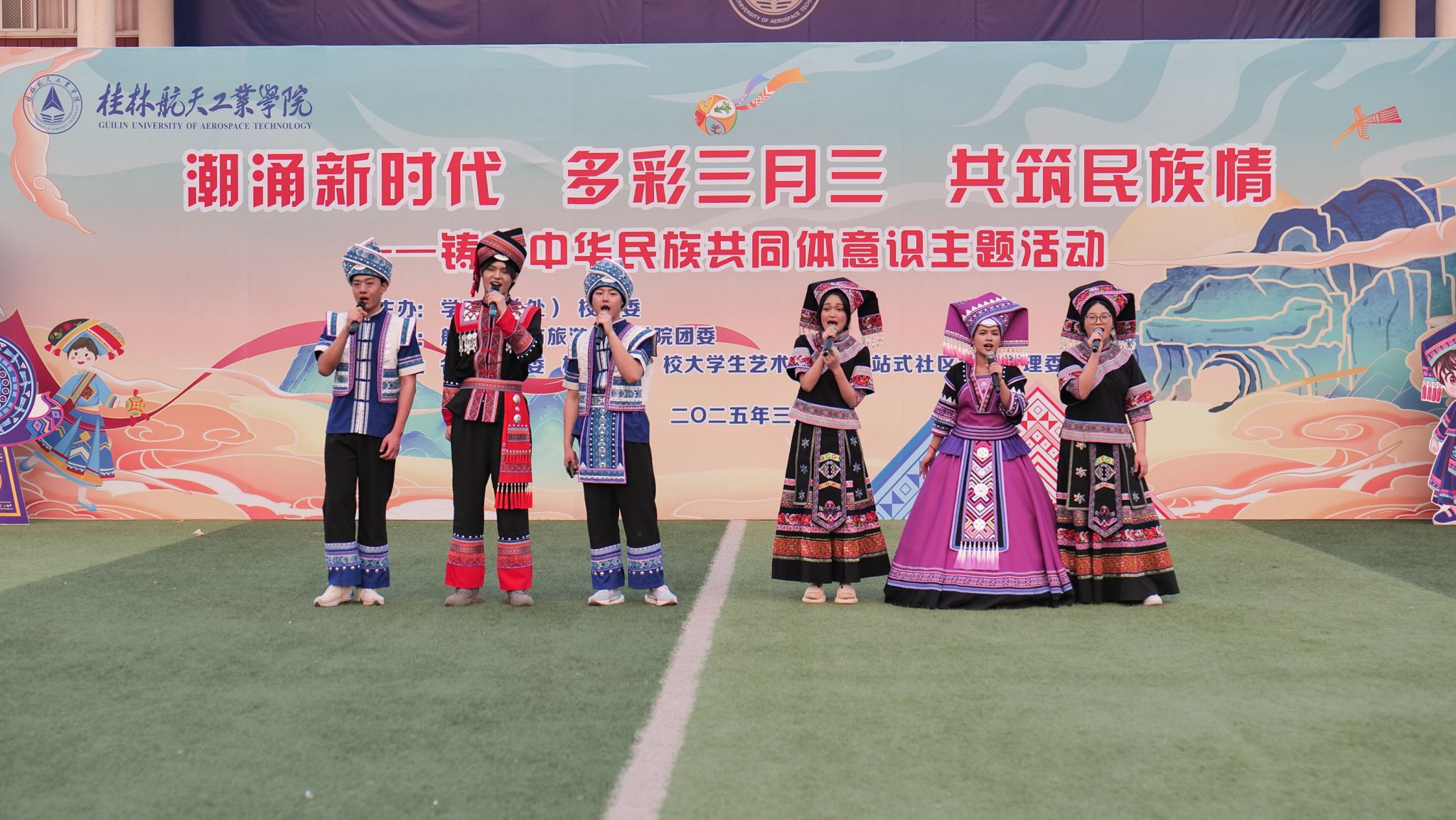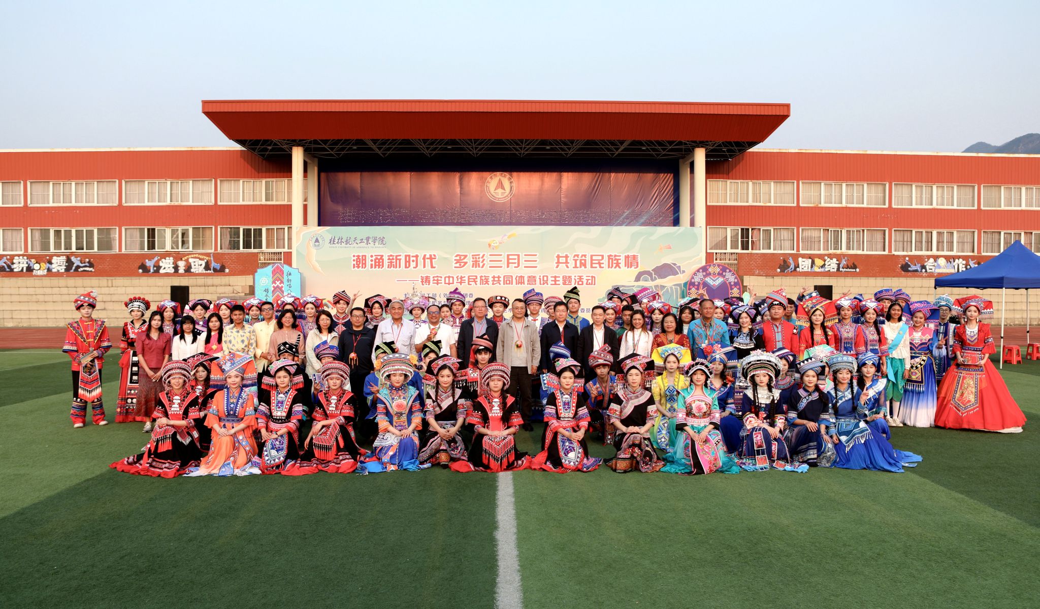 为铸牢中华民族共同体意识,弘扬优秀传统民族文化,迎接“广西三月三”的到来,3月25日,由校学生工作部(处)、校团委主办,伟德bv1946官网团委承办的“潮涌新时代·多彩三月三·共筑民族情”铸牢中华民族共同体意识主题活动在南校区风雨球场举行。