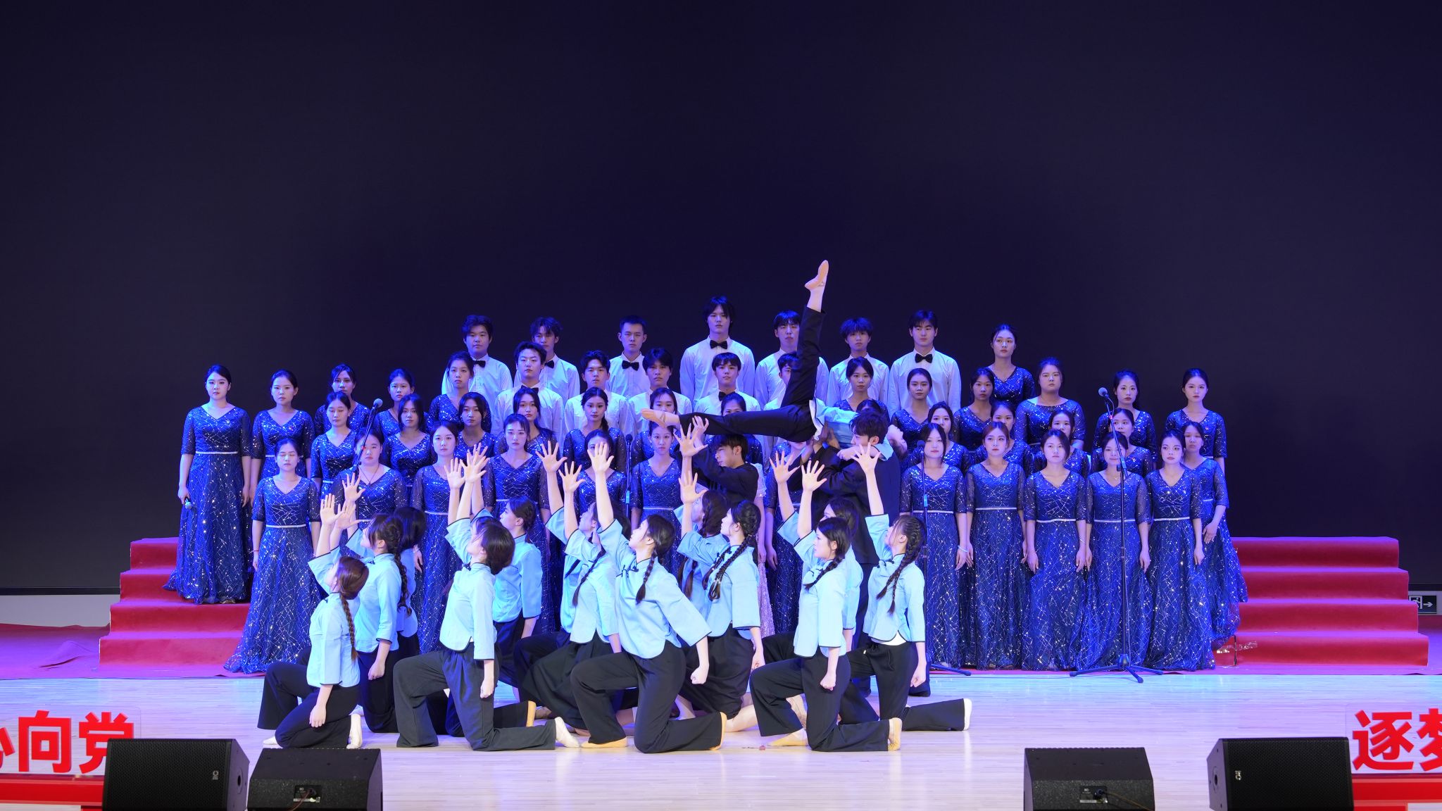 伟德bv1946官网作为第八支参赛队伍登场,在指挥的精准调度下,我院合唱团成员以饱满的精神状态倾情献唱《初光》。激昂的歌声与铿锵的歌词相得益彰,生动诠释了“为理想信仰而奋斗”的青春誓言。伴舞团队以刚健有力的动作融入表演,将歌曲中“振兴中华”的豪情层层递进推向高潮,赢得现场观众经久不息的掌声。评委组高度评价我院作品“情感真挚、编排精湛,展现了青年一代的责任担当”。 值得一提的是,指挥杨祎璠同学凭借节奏把控与优美的艺术感染力,荣获本届歌会“优秀指挥奖”,为团队荣誉再添亮色。