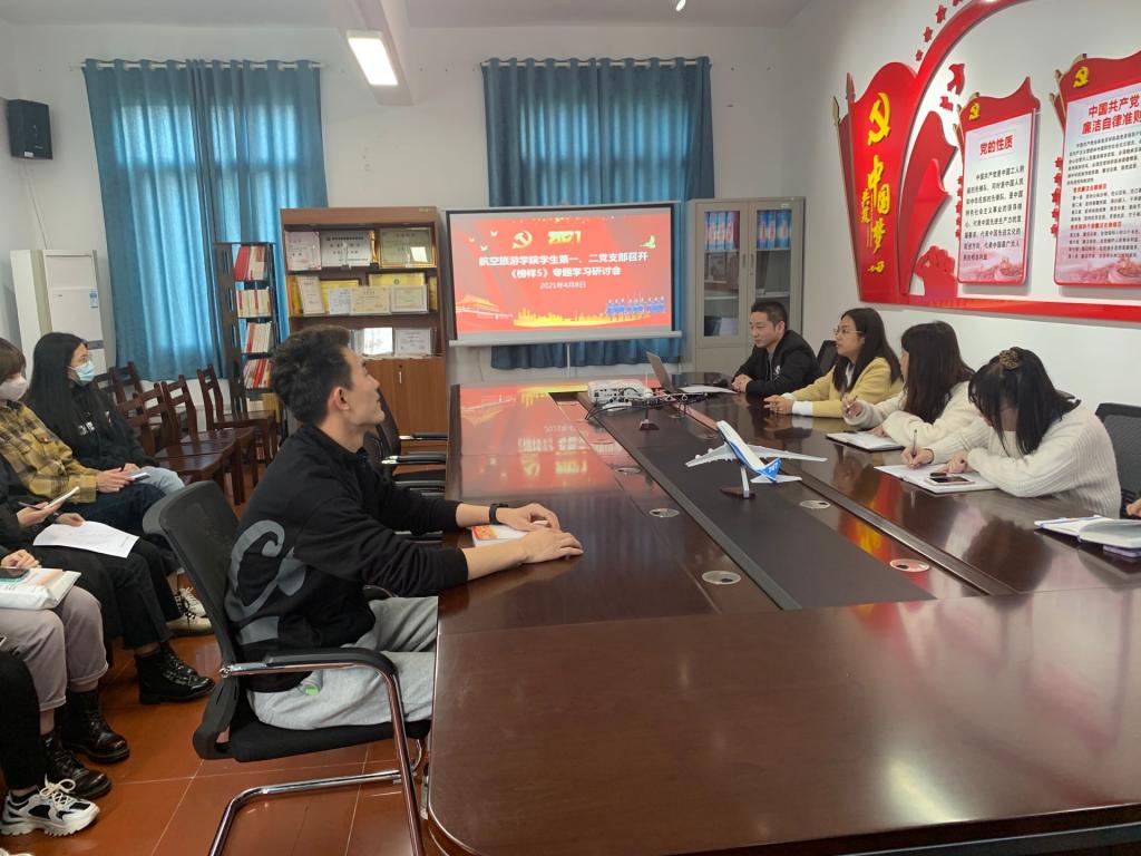 为深入学习贯彻习近平新时代中国特色社会主义思想,全面贯彻党的十九届五中全会精神,充分发挥学生党员先进典型的示范引领作用,进一步营造创先争优的浓厚学习氛围。4月8日中午,航空旅游学院学生第一、二党支部召开《榜样5》专题学习研讨会,全体学生党员集中观看《榜样5》专题节目,并展开深入地研讨交流。