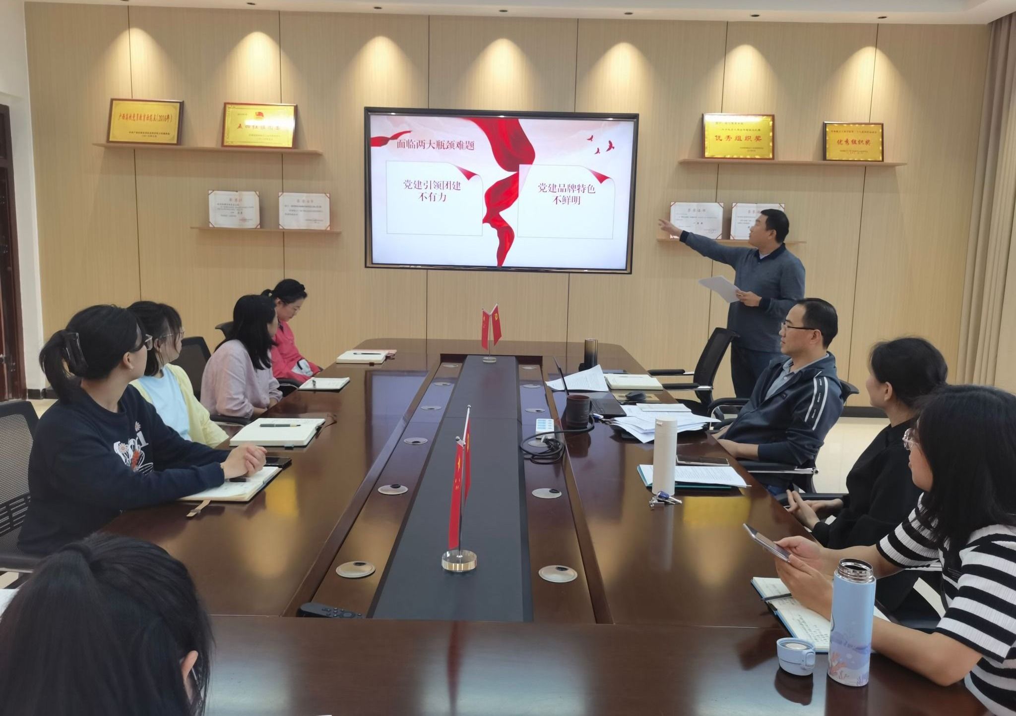 张海涛强调党支部要注重凝练工作思路和模式,并分别对各个支部的建设思路进行梳理,针对不同支部的特点指出建设方向,其他与会成员积极建言献策,研讨活动取得了积极成效,确定了要进一步优化教师党支部工作思路和模式,进一步明确学生第二党支部建设品牌,基本明确了学生第一、第三党支部未来建设的思路和模式。