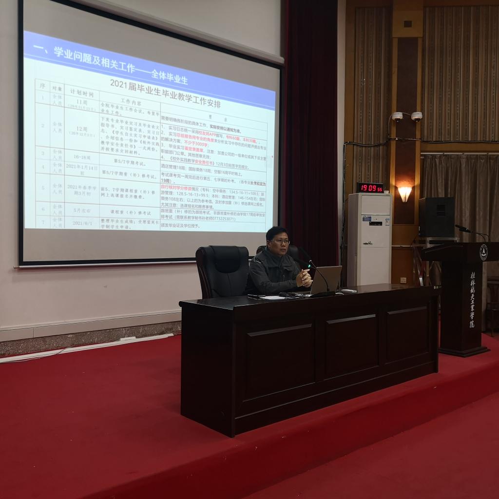 为切实做好我院2021届毕业生学业及就业相关工作,11月23日晚上,航空旅游学院在2108教室召开了2021届毕业生工作布置会议,对2021届毕业生的就业工作进行了详细布置。学院副院长林朝阳、党总支副书记李雨思、毕业班辅导员以及全体毕业生参加了会议。