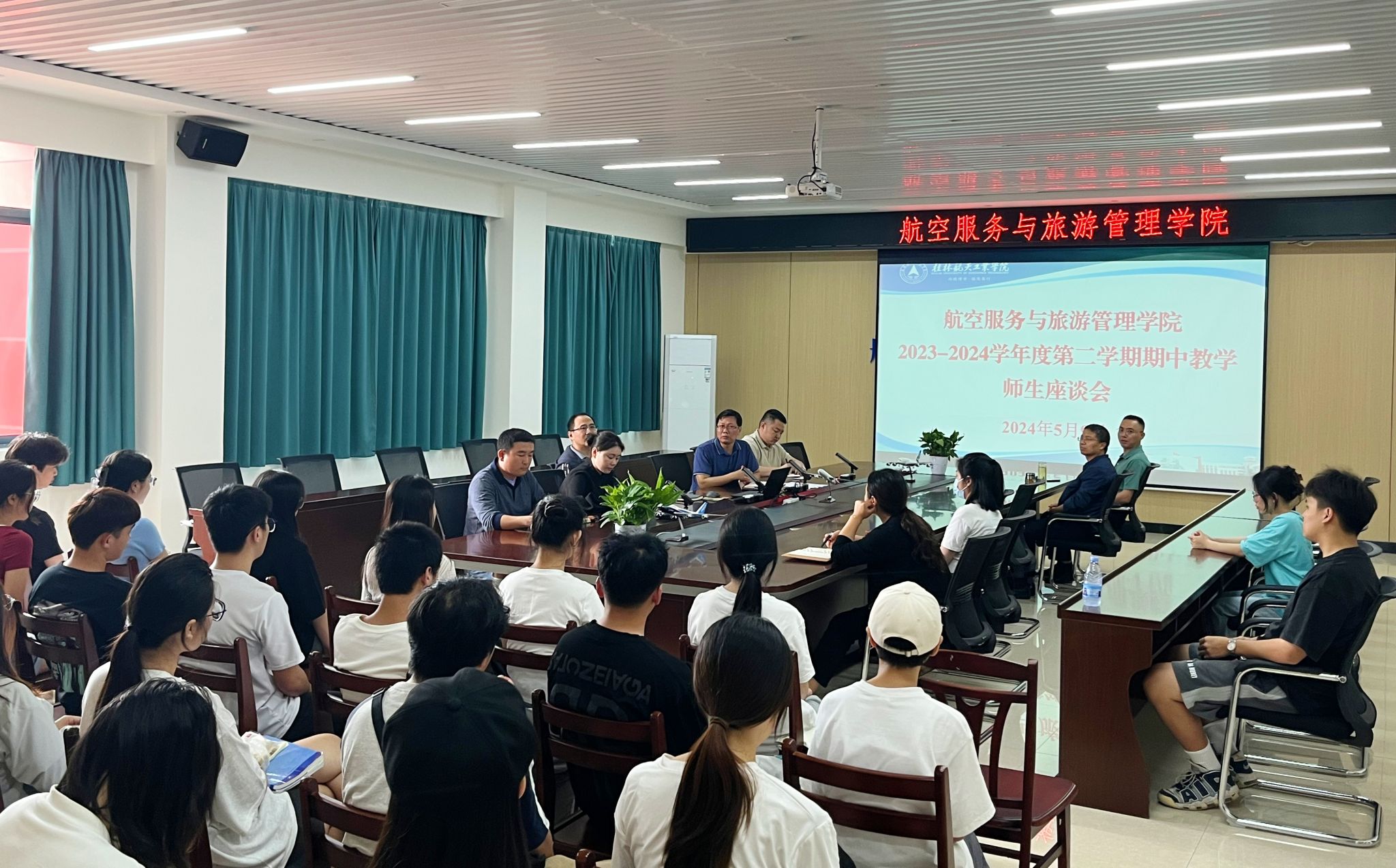 5月9日中午,学院在探天C207会议室组织召开本学期期中教学师生座谈会,学院党委书记张海涛、院长林朝阳、党委副书记唐珉、学院团委书记刘圣涵和各教研室教师代表以及各班学生代表参加座谈会。