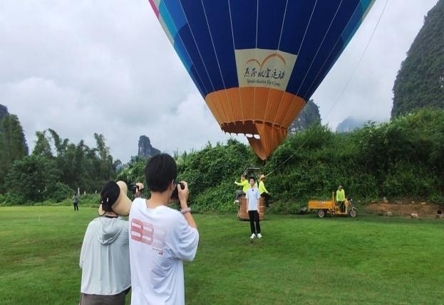9月9日上午,为积极应对“第十八届全国高校商业精英挑战赛全国大学生文旅与会展创新创业实践竞赛”,选择旅游竞赛的旅游管理与服务教育专业学生在指导老师蒙歆媛的带领下前往桂林阳朔燕莎航空运动营地实地取景,阳朔燕莎航空运动有限公司总经理任仲平现场对活动进行指导。