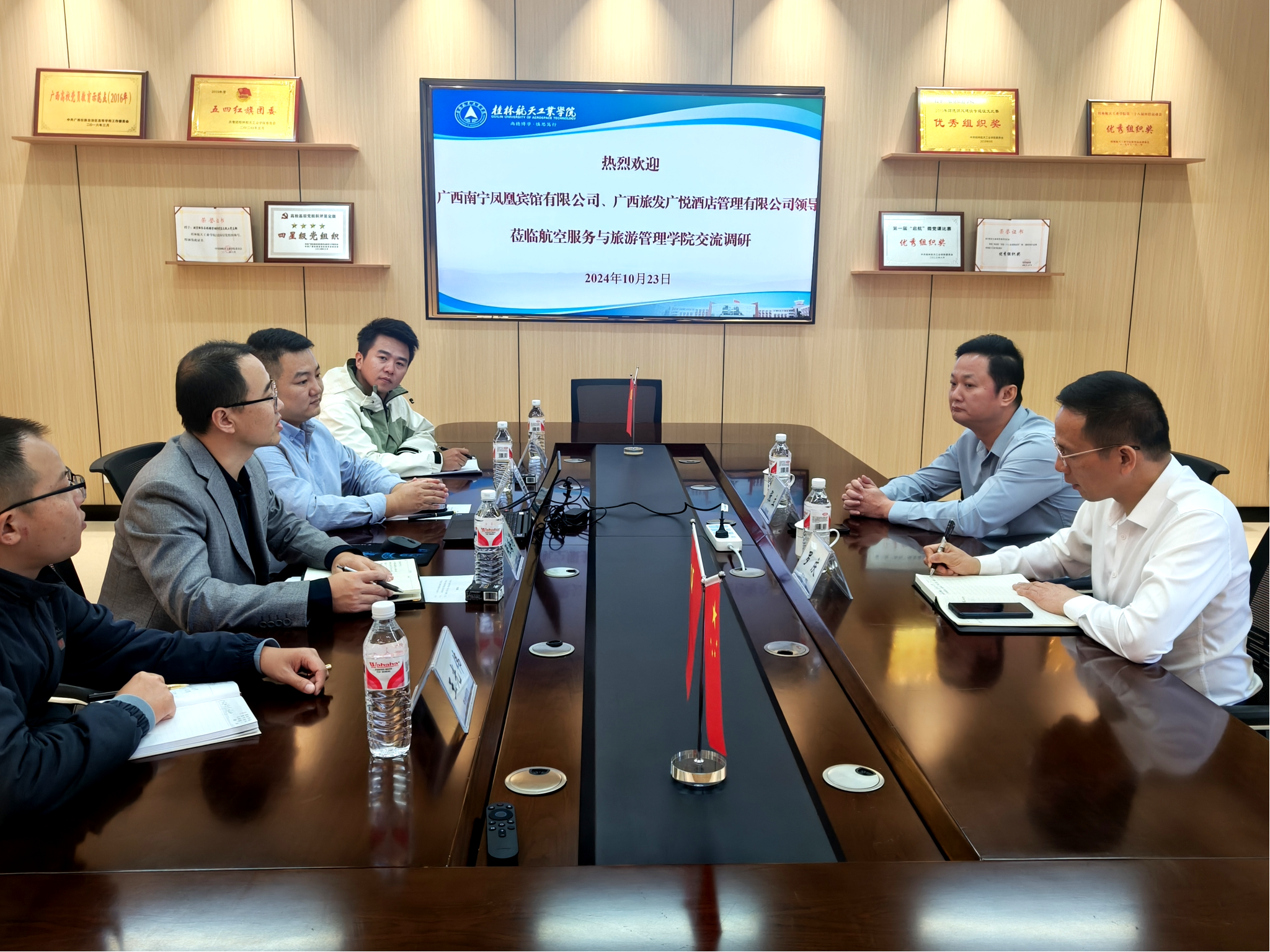 10月23日上午,南宁凤凰宾馆有限公司党总支书记、董事长张立、南宁凤凰宾馆有限公司副总经理罗庆来到学院交流、指导,学院党委书记张海涛以及相关专业教师代表参加座谈会。