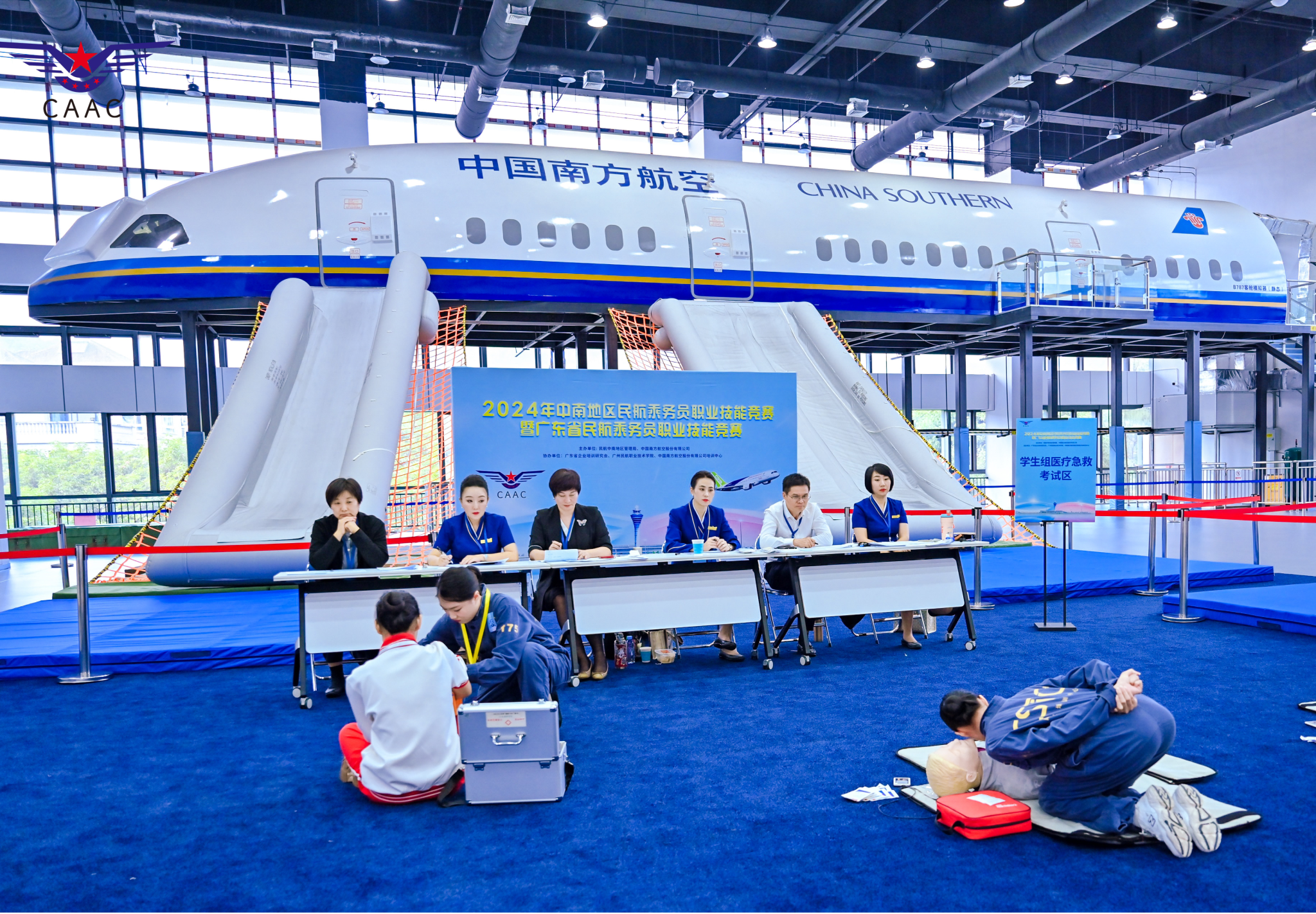 2024年中南地区民航乘务员职业技能竞赛于近日在中国南方航空公司广州产教融合实训基地隆重举行。此次竞赛吸引了来自中南地区多家航空公司的优秀乘务员和多家航空院校空乘专业学生参赛,他们通过精湛的技艺和专业的服务展示了民航乘务员的卓越风采。桂林航天工业学院伟德bv1946官网的教师作为特邀嘉宾,全程观摩了比赛。