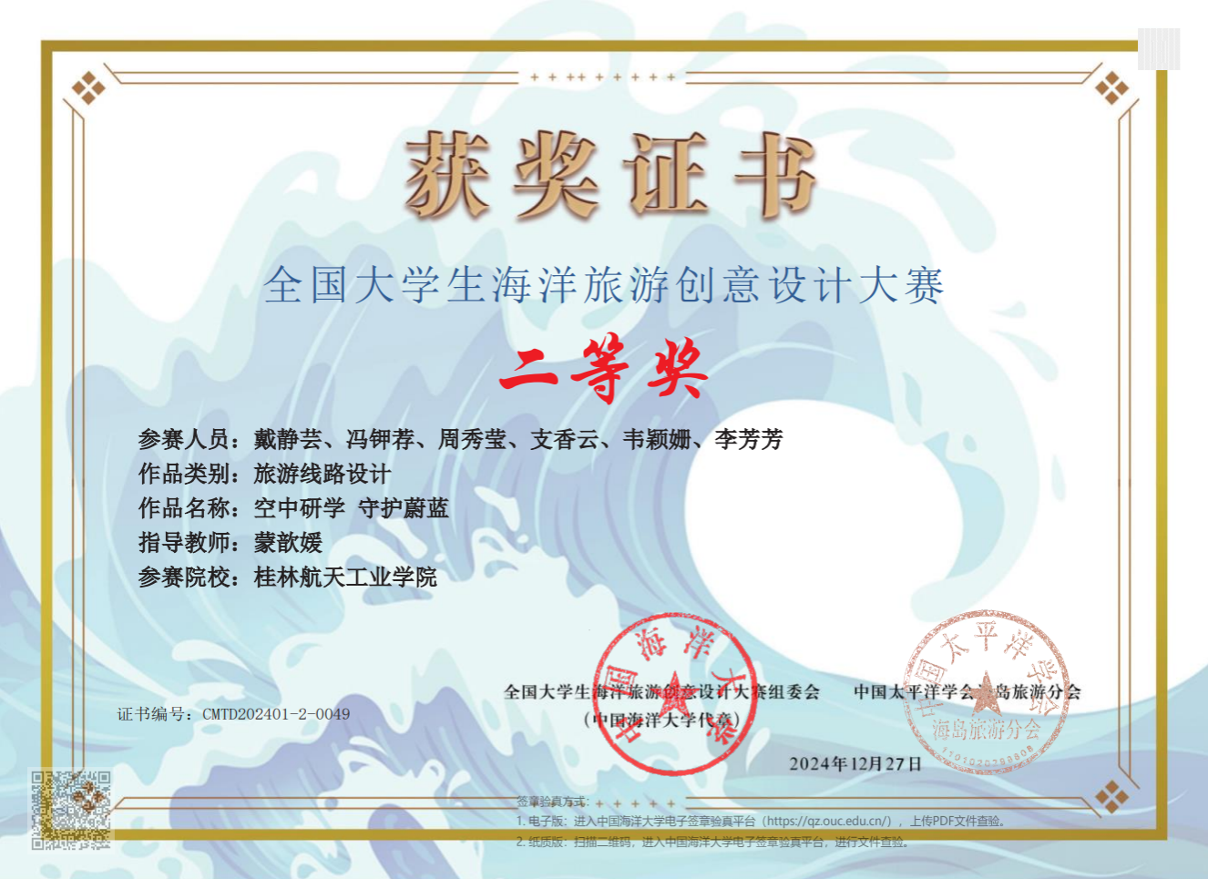 2024年12月,全国大学生海洋旅游创意设计大赛落下帷幕。全国大学生海洋旅游创意设计大赛是由中国海洋大学发起,全国涉海高校教务联盟、中国太平洋学会海岛旅游分会、山东省精品旅游促进会共同主办的一项全国性大学生竞赛活动,共吸引了全国80所高校、500多支队伍、约3000名师生参加。