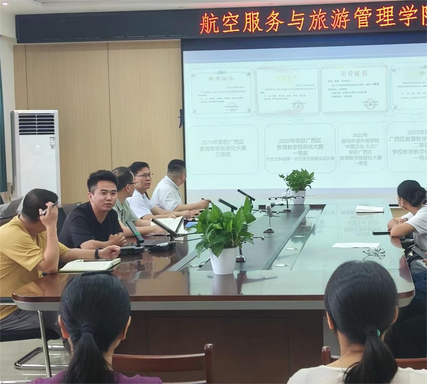 5月30日下午,航空服务教研室闫绪老师在探天C208会议室做教育教学信息化大赛经验分享,学院党委书记张海涛、院长林朝阳以及全院教职工参加分享交流活动。
