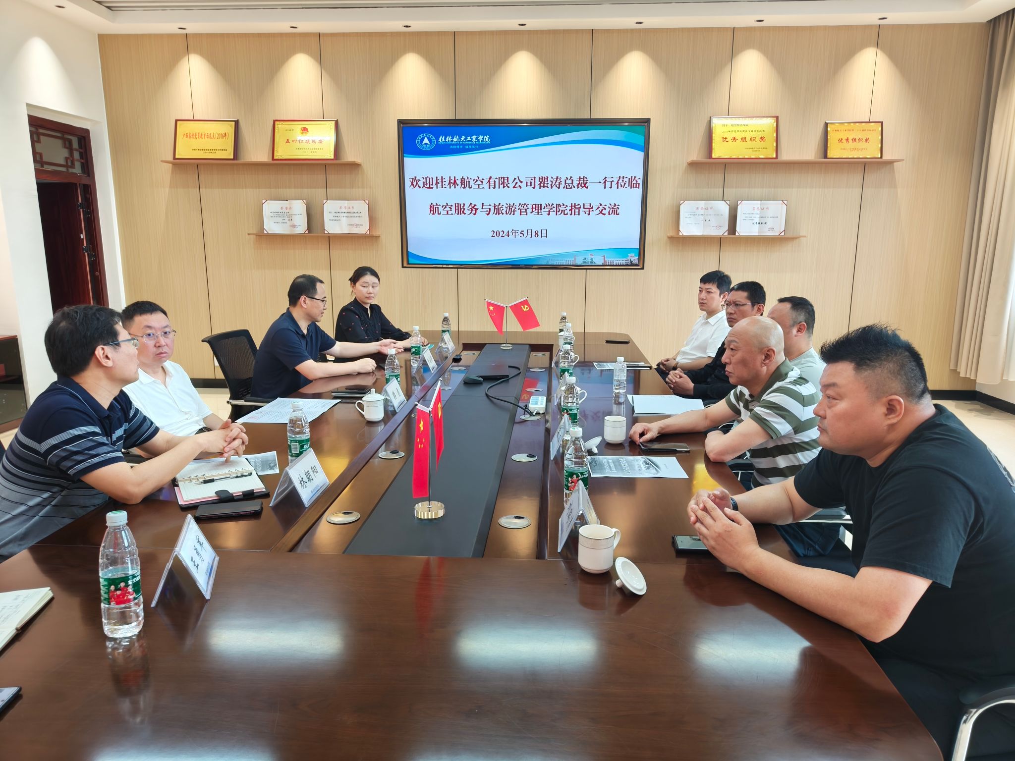 5月9日下午,桂林航空有限公司瞿涛总裁一行5人到我院调研交流。双方在探天楼C208会议室召开座谈会,就专业共建、校企合作事宜进行了深入交流。学校校长助理樊勇,学院班子成员以及航空宇航学院负责人参加座谈会。