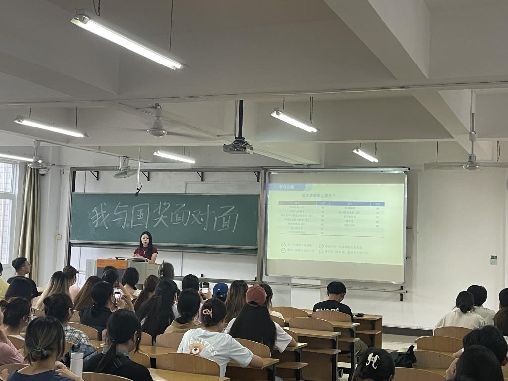 为深入贯彻党的二十大精神,充分发挥资助育人功能,展现国家奖学金学子的榜样风采,助力大一新生健康成长与全面发展。5月21日晚,我院在南校区飞天楼204举办“我与国奖面对面”经验分享会。徐斌洋和何光晓两位国家奖学金获得者作为分享人与同学们分享心得、交流经验。
